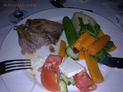 Αυτή τη φορά επρόκειτο για ένα τόνο - Λακέρδα, τον οποίο ο σεφ του ξενοδοχείου μαγείρεψε με δυο πεντανόστιμες συνταγές. Μακαρονάδα με θαλασσινά και τόνο για πρώτο πιάτο και τόνο στο gril για δεύτερο πιάτο! Τα συνοδευτικά πιάτα αρκετά και πολύ νόστιμα επίσης!